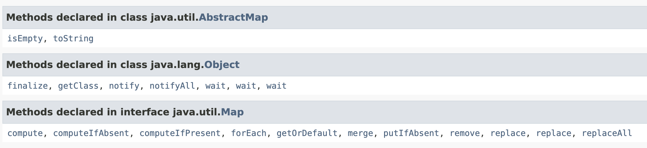 EnumMap이 사용할 수 있는 메서드는 정말 다양하다. 상속받은 부모의 메서드를 사용할 수 있고, 추상 인터페이스의 default 메서드들도 사용할 수 있기 때문이다.