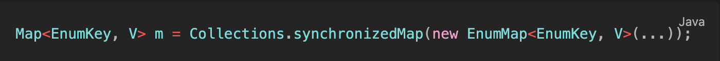 - 다른 컬렉션 구현체와 마찬가지로 EnumMap 자체는 스레드 안전하지 않다.