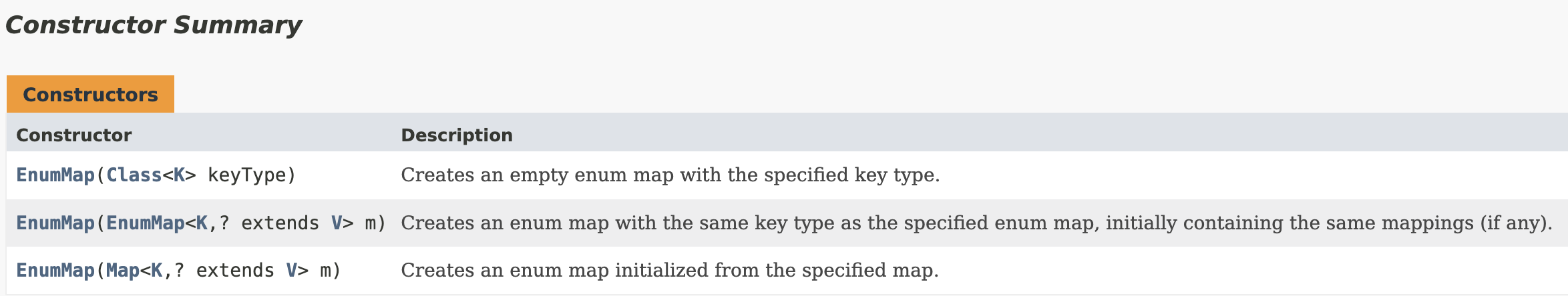 2. EnumMap(EnumMap<K, ? extends V> m)은 인자로 받은 EnumMap을 copy해서 생성하는 것 같다.